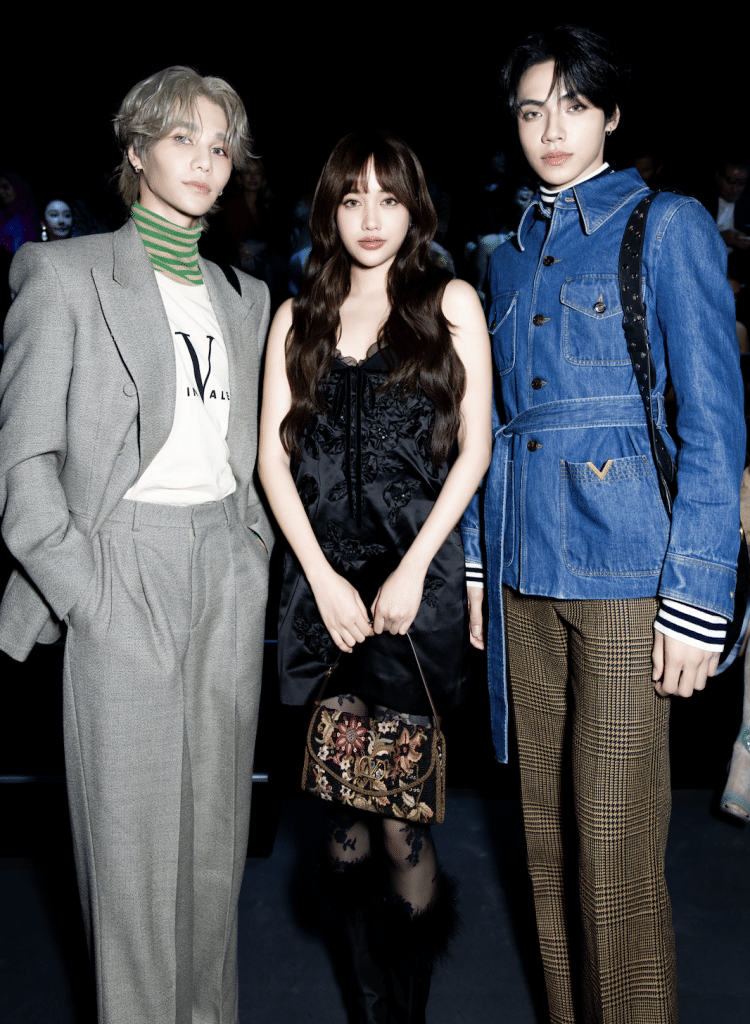 Jeff Satur, Freen Sarocha, and Peem Wasupon attended Creative Director Alessandro Michele’s “Fireflies” show, dressed in Valentino designs. Michele’s latest collection explored themes of darkness illuminated by sparks of hope, love, and imagination.