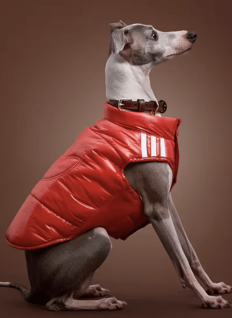 Every piece rocks the iconic Three Stripes. But this is not just fashion for fashion’s sake. The windbreaker repels water (revolutionary for rainy walkies), the padded vest keeps tiny bodies toasty, and the tracksuit delivers the ultimate coordinated pet and parent look.