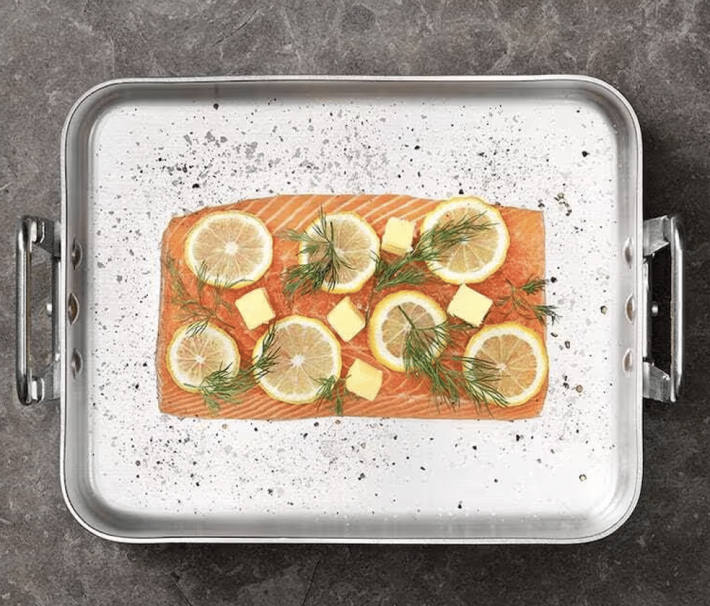 “So, so, so simple: if you have an oven at home, preheat it, place your salmon on foil, add three slices of lemon on top, and sprinkle dill on the side. That’s it. It’s easy and incredibly delicious. I can guarantee it will be yummy.”