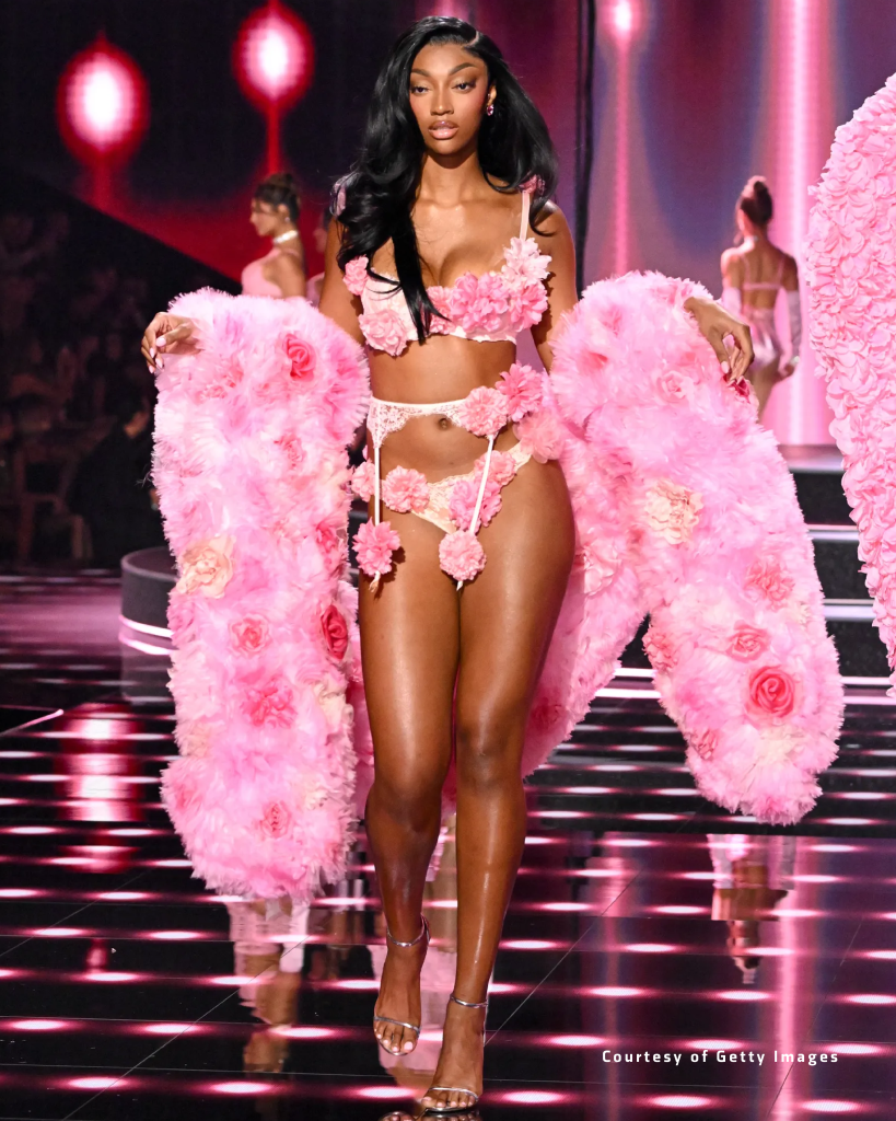 Jasmine Tookes opened the show with her beautiful baby bump. Angel Reese and Sunisa Lee shattered the old playbook as athletes strutted down.