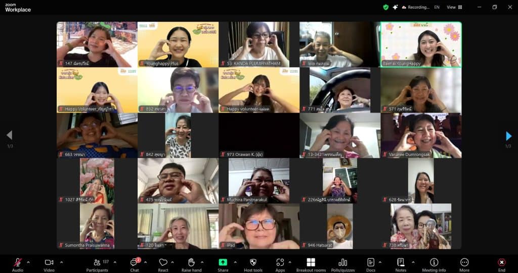 Technology plays a central role at YoungHappy because it allows people from all over Thailand to come together, regardless of location. The COVID-19 pandemic highlighted this need as lifestyles shifted and many seniors became more home-bound, increasing the risk of social isolation. The online platform not only helps them stay connected but also provides a cost-effective alternative to organising in-person gatherings.