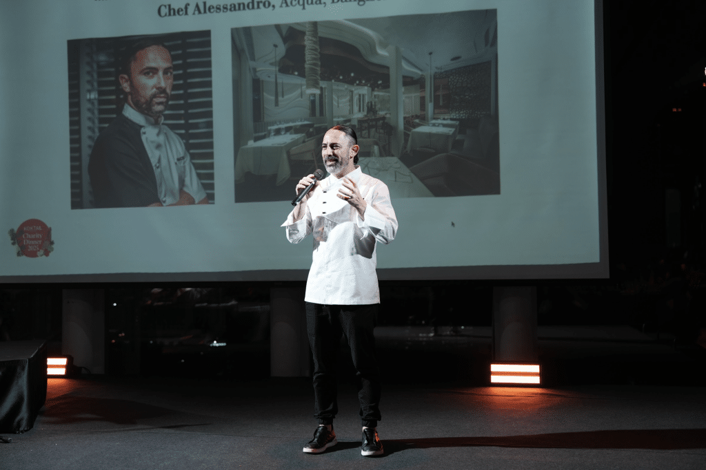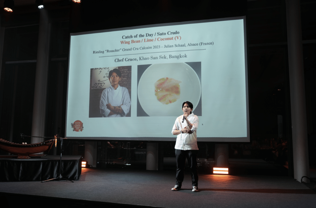 He opened the night with a joyful celebration of Thailand’s culinary scene, highlighting the country’s finest chefs, local produce and the spirit of giving through the partnership with the Issarachon Foundation.