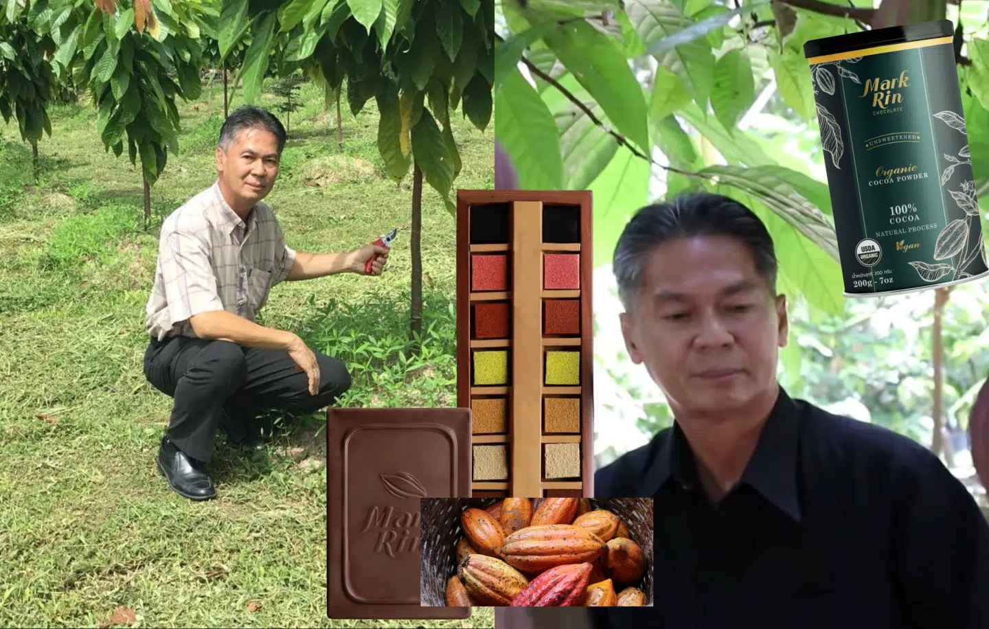Beyond production, the family places equal importance on farmer support. In 2018 MarkRin Farm was registered to expand promotion of I.M.1 cocoa across all provinces of Thailand. They promote sustainable cultivation through intercropping systems and organic orchard care. Farmers receive selected cocoa varieties suited to their land, along with mature three-year-old trees that already bear fruit, often provided in groups of 30 to support sufficiency-based farming.