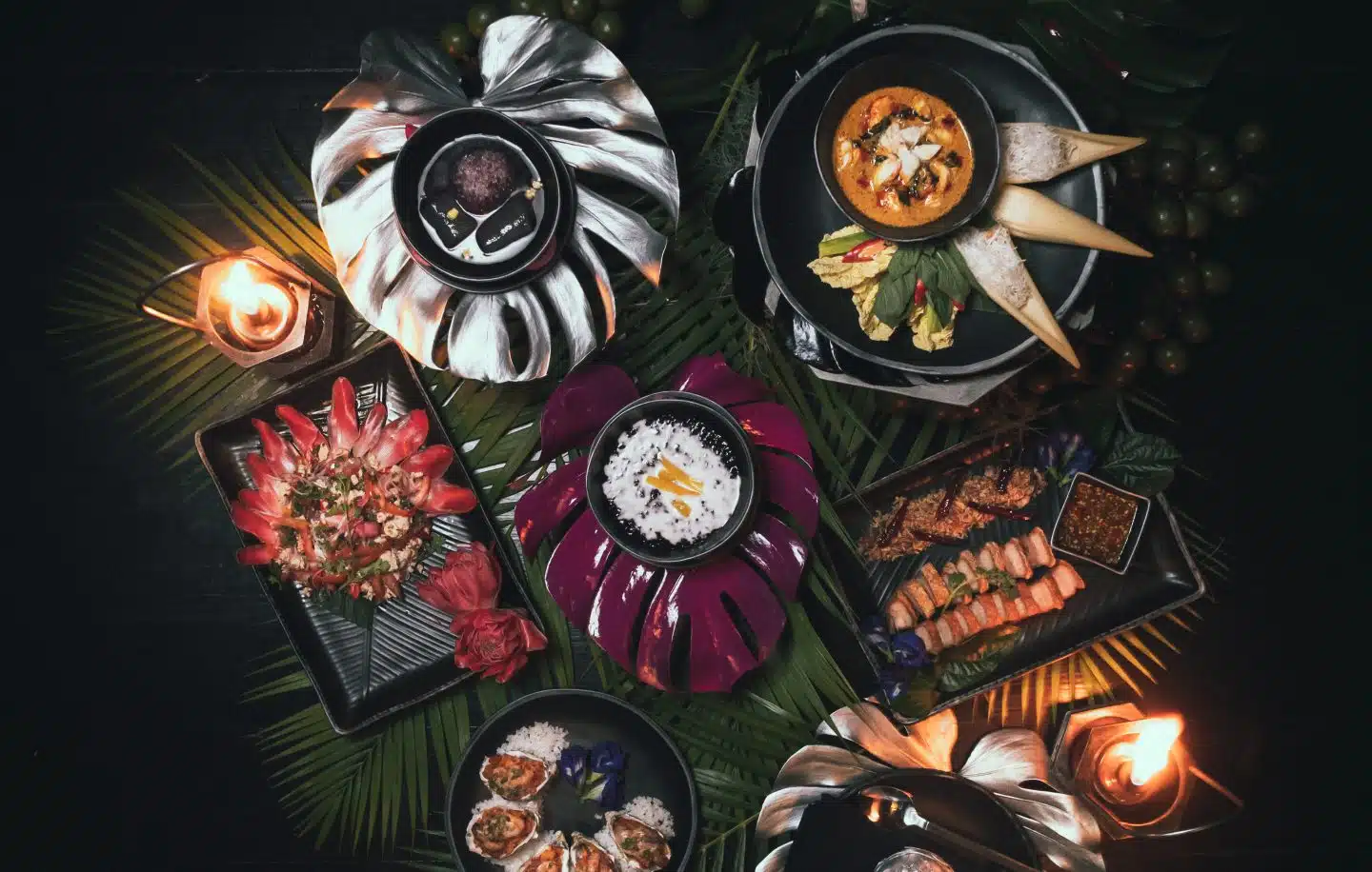 An island mansion overlooking an illuminated lagoon, reached by hand-powered raft, Black Ginger boasts a fairytale setting. The cuisine, a blend of traditional dishes and modern revisions lovingly created by chef Piak, pays homage to the restaurant’s unique ambience. To appreciate the range of southern Thai fragrances and flavours, set menus are recommended. “Phuket Authentic”, featuring Andaman seafood and beef and pork belly mains, includes lobster salad and signature starters, crispy prawns garnished with aralia leaves, and poh pia sod, spring rolls with crabmeat and pork strips. Pad khai, egg served with melinjo leaves, is unique to southern Thailand. “Black Ginger Experience” highlights locally sourced ingredients, with an emphasis on sea food – zesty stir-fried squid with garlic, and exquisite creamy coconut soup with mud crab and galangal. Choo chee goong, king prawns immersed in luscious red curry, is delightful. The meat-free menu is extensive: two spicy salads, massamam peanut curry, stir-fried tofu, and gian thod (crunchy sausage). Choose from the culinary opulence and sample “a la carte” offerings: Andaman fish, including herby steamed barracuda and pomfret, stir-fried wagyu beef, and eight curries. Classic goong makham features succulent prawns marinated in tamarind sauce. Coconut, dominates an impressive dessert list. There are cocktails for every taste, and the wine list is discriminating, with Marlborough pinot noir a perfect accompaniment for spicy food.