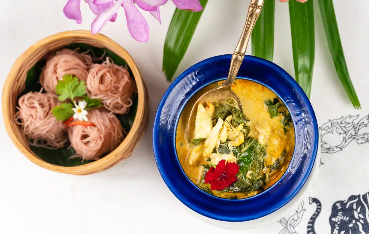 Set in a stunning colonial-style mansion dating to the early 20th century, Blue Elephant is a celebration of Thailand’s rich culinary traditions and an immersive cultural experience. Chef Nooror Somany Steppe, a renowned figure in Thai cuisine, applies her Peranakan roots to add complexity and depth to traditional Thai flavours and deliver a truly distinctive and delightful experience. The extensive menu is a masterful blend of Thai classics and innovative creations. The pink pomelo salad and prawn cake starter combine refreshing piquant pomelo with savoury prawn for a balanced appetiser that excites the palate. Signature massaman free-range, organic grass-fed lamb curry is characterised by mild, yet rich complex flavours. While hot Phuketian mangrove crab curry is a vibrant presentation that features fresh, meaty, succulent crab cooked in a sauce that blends Thai spices, coconut milk, turmeric, and other aromatic herbs, providing a creamy and slightly sweet taste with a hint of heat. For dessert, try the specially imported “70% Callebaut” chocolate mousse, from Belgium where Chef Nooror’s culinary career began. A full offering of well-crafted cocktails and an extensive wine list, including several organic and biodynamic options, with impeccable service provided by a team of knowledgeable attentive staff maintain Blue Elephant as one of the premier destinations of its kind.