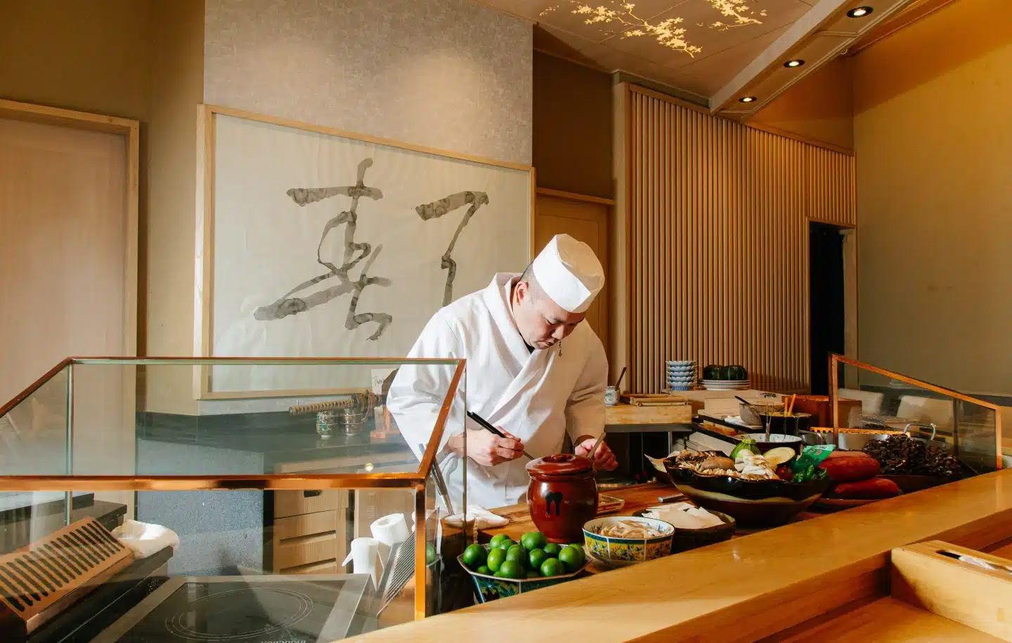 Ginza Tenharu is where you come to truly understand the depth of this culinary art; a restaurant that reveals the profound artistry of Japanese tempura. The entrance marked only by a small, almost unnoticeable, sign. Chef Takuma Tarumi is a tempura master with almost 30 years’ experience. The restaurant offers 12 counter seats serving a chef’s choice menu; frying ultra-fresh ingredients into tempura, the sound of sizzling oil whetting your appetite. Dining begins with three delicate appetisers; uni and uni tofu, salmon roe with roe jelly, and simmered abalone. Next up, signature Japanese tiger prawn tempura. Then, possibly, dried seaweed tempura topped with fresh bafun uni. All ingredients are air-flown from Toyosu market; when the market is closed, so is Ginza Tenharu. Perfectly executed premium-grade fish, including kisu and mebachi, often with earthy maitake mushrooms or Fushumi shishito peppers. Choose from tempura over rice, tempura with green tea over rice, or tempura with an exquisite house specialty broth with tempura prawn balls and green onions over rice, and bonito broth poured over. The broth aroma blends with the scent of green onion to create an unforgettable flavour. Tempura is lightly fried and never heavy, a testament to chef’s technical proficiency. For dessert, there is usually sweet or mochi ice cream. A dry white Italian wine complements the tempura perfectly.