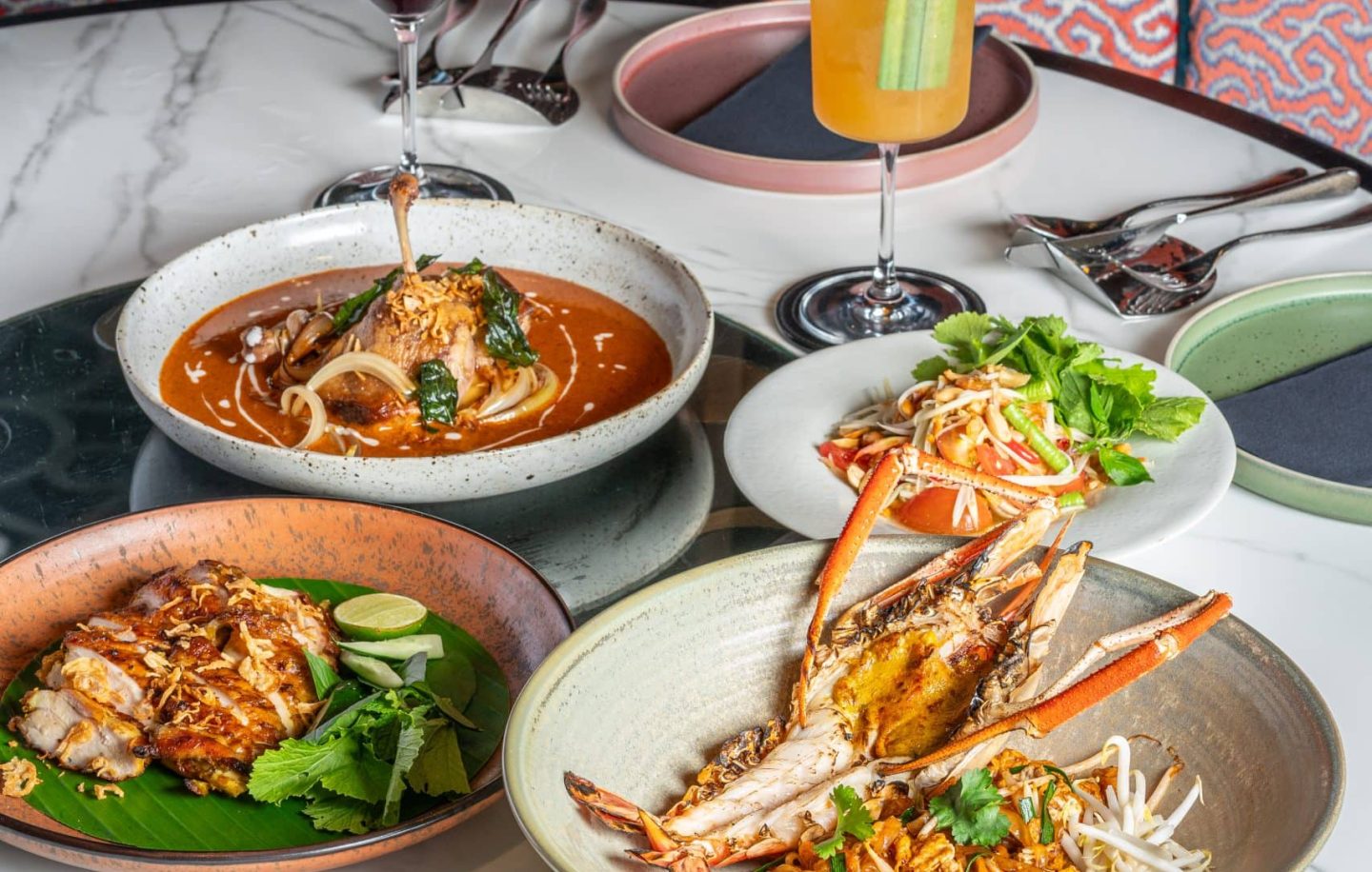 This contemporary Thai restaurant occupies the former home of Siamese silk expert Jim Thompson. Upon entering, a mystifying scent of cultural significance looms. The interior features lacquered wood festooned with vivid indigo silk and a symmetry that feels ceremonial, speaking volumes about its golden age. Begin with satay lue moo, each skewer marked with confident char, paired with peanut sauce that leans savoury over sweet, and accordion-cut pickled cucumbers complementing richness with a vinegared snap. Yum som o goong yarng brings segmented pomelo striking a balance between bright and bold, neutralising sweet herbal spice, yet the prawn stays in focus. Pad Thai, a dish rooted in 1930s nationalism stands out sharpened by tamarind, softened to perfection by palm sugar and grounded by flame-grilled river prawns justifying the signature label. Follow with plah hoi shell yarng, grilled Hokkaido scallops served cool for contrast, accented with fresh lemongrass, kaffir lime, mint, and crushed chilli, a scent that reminds where you are. Throughout the meal the house white wine holds its line, dry enough to steady the sweetness and clean enough to realign the palate between heat and char. Among dessert options, i-tim kluey tod stands tall, a nostalgic trace for many. Golden banana fritters arrive warm, cloaked in coconut-scented caramel, while the cold velvety scoop of ice cream keeps everything in harmony.