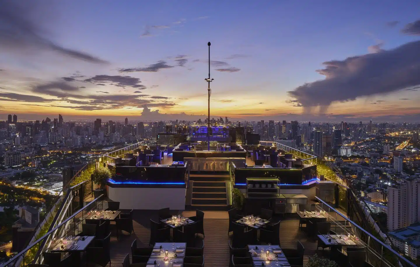 The Bangkok skyline wouldn’t be what it is without the Banyan Tree Bangkok, and Vertigo, a pioneer of the city’s rooftop dining scene. Veering away from modern-day experimentation, Vertigo is committed to the familiar delivered with style. Recommended starters include crab and claw bruschetta, an elegant presentation of generous fresh crabmeat, topped with a lobster claw and garnished with ikura and microgreens, accompanied by several crunchy toasts. Signature duck salad comprises tender, tasty meat, combined with tossed greens, pomegranate, avocado and coated in a richly piquant hoisin dressing, before a dusting of sesame seeds. For mains, there is a range of meat and seafood options, from top-grade Australian beef cuts, both grass and grain-fed, to timeless black Angus chateaubriand, for sharing with a multitude of sauces and sides to accompany. For non-beef lovers, there are equally tempting platters, including lamb rack or a kurobuta pork chop, fresh shellfish and butter-poached Canadian lobster. The dessert menu includes vegan chocolate banana and house-made sorbets and gelato. The wine list is extensive, as is the house and classic cocktails and mocktail menu. Staff are well-rehearsed in the rooftop routine, enthusiastically seeking to take excellent photos for diners, and even offering complimentary printed and framed pictures as souvenirs.